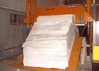 Using Rolleri covers the operation is more convinient compared to belt conveyor application. By means of covers the splitted roll can be forwarded controlled to pulp process. Free enlargment of splitted roll reduces the cutting force.